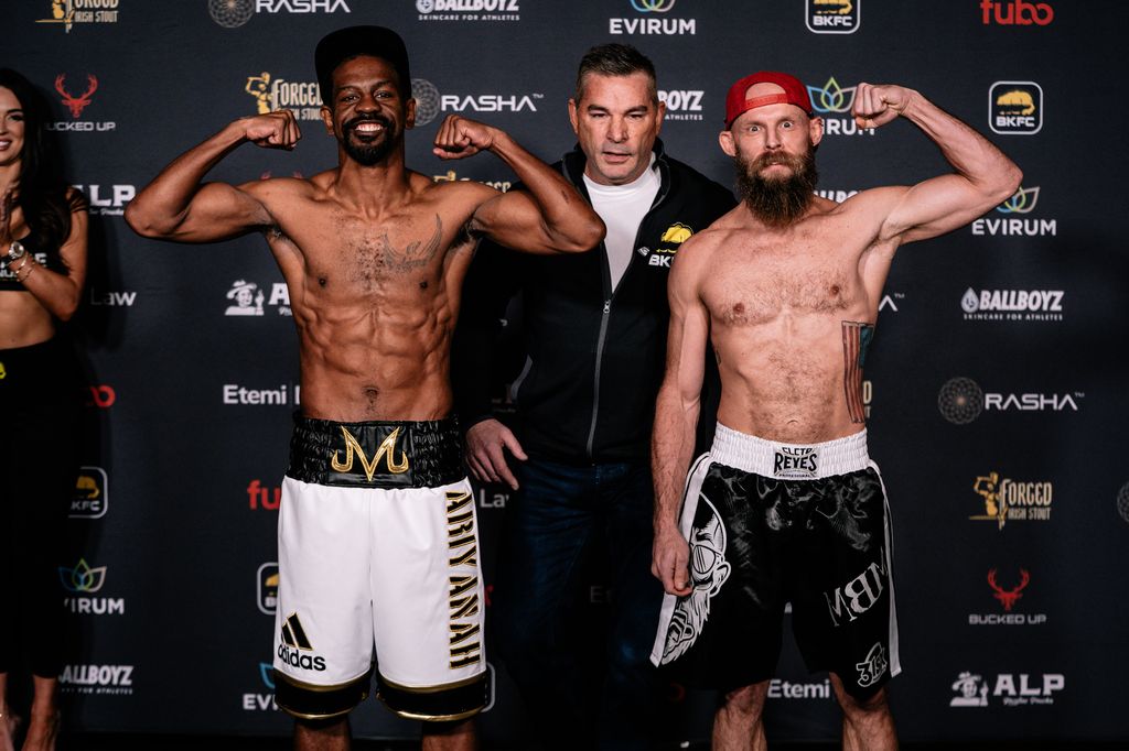 Full weights below. All fights are scheduled for 5 rounds of 2 minutes per BKFC rules.