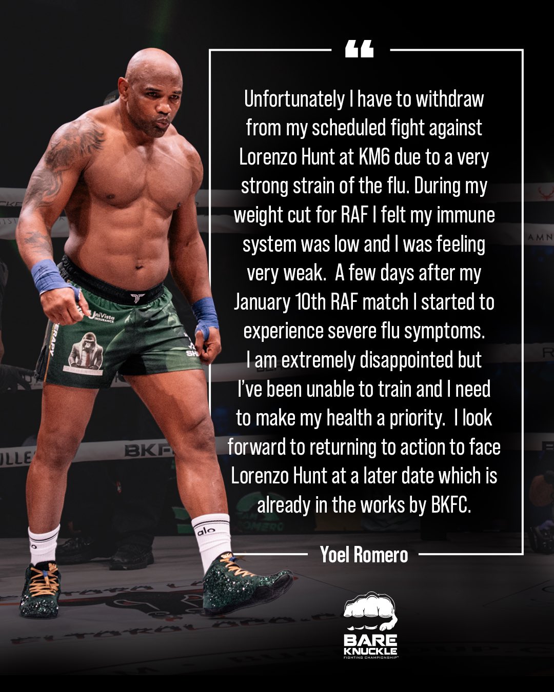 Romero released a statement explaining his withdrawal, mentioning he looks forward to returning to action in BKFC.
