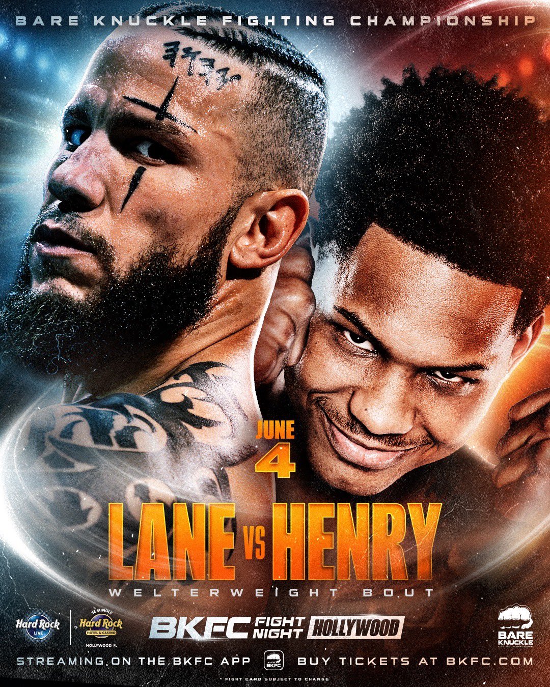 Unbeaten phenom Bryce Henry (6-0, 6 KOs) will take on former welterweight champion Julian Lane on 4 June in Hollywood, Florida. The bout will headline BKFC Fight Night Hollywood at the Hard Rock Hotel and Casino.